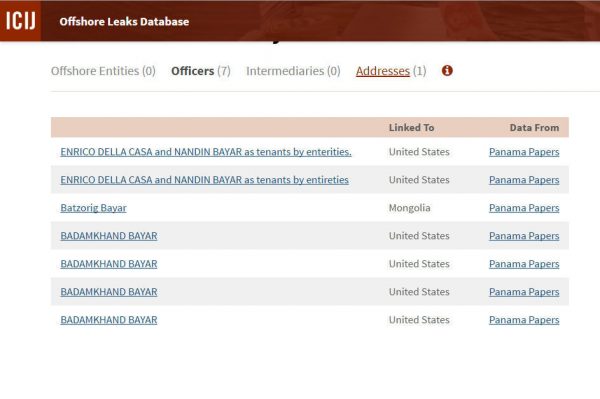 Олон улсын эрэн сурвалжлах сэтгүүлчдийн концорциумаас зарласан оффшорчдын тухай мэдээлэл доторх С.Баярын охидын нэр буюу оффшор данс эзэмшигчид