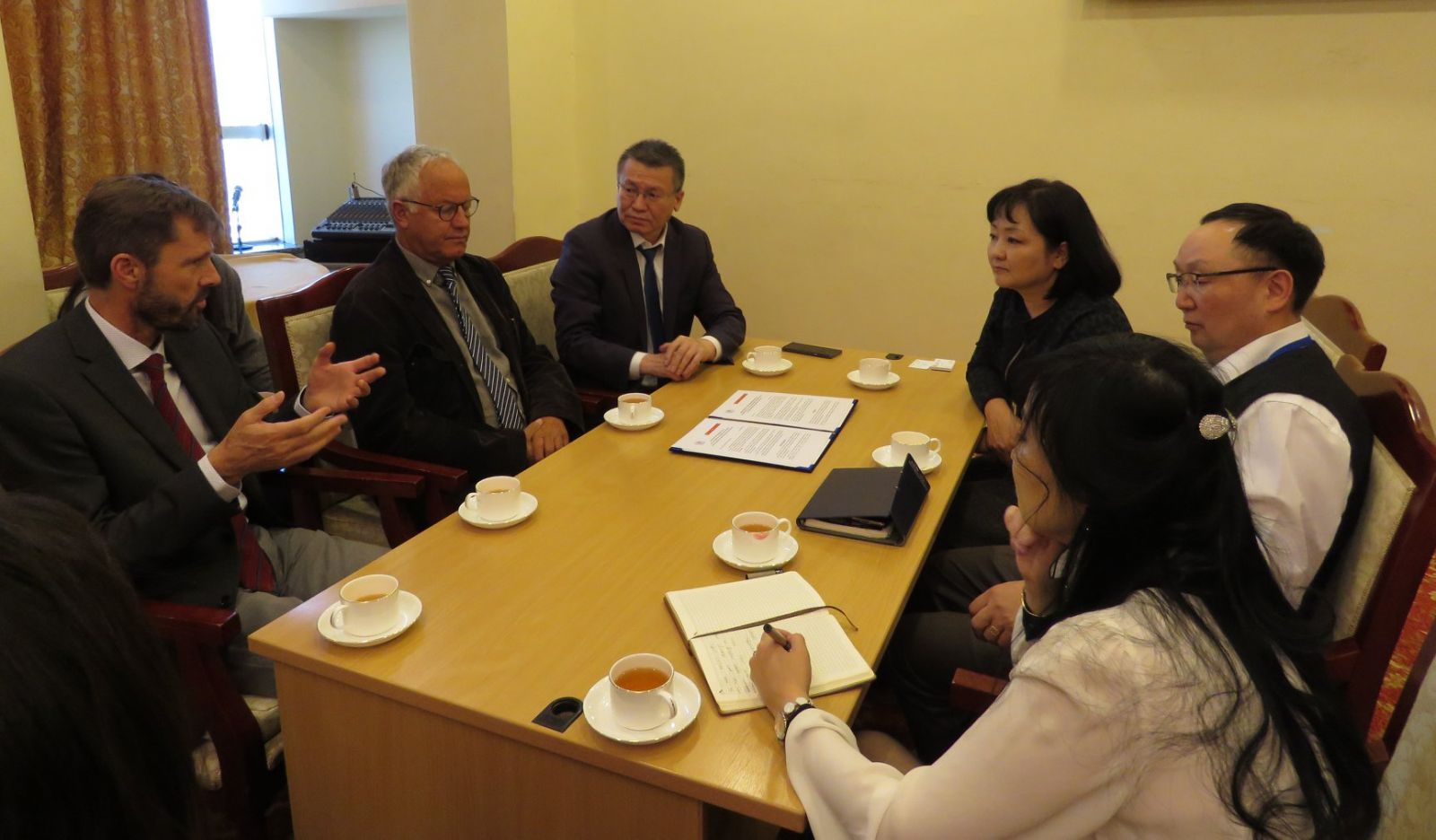 Энэ хүрээнд НЭМГ-ын орлогч дарга Л.Зэндмаа, ЭХЭМҮТ-ийн захирал Ш.Энхтөр, Эрдэм шинжилгээ, сургалт, гадаад харилцаа эрхэлсэн дэд захирал М.Баялаг, Швейцарийн хүүхдийн хэт авиан оношилгооны нийгэмлэг, Монгол-Швейцарийн хамтарсан хүүхдийн төсөл (SMOPP)-ийн үндэслэгч, профессор, хүүхдийн эмч Tомас Бауманн, төслийн ерөнхийлөгч, Швейцарийн Баар хотын хүүхдийн эмнэлгийн эрхлэгч, профессор Раоул Шмид болон НЭМГ-ын мэргэжилтнүүд оролцлоо.