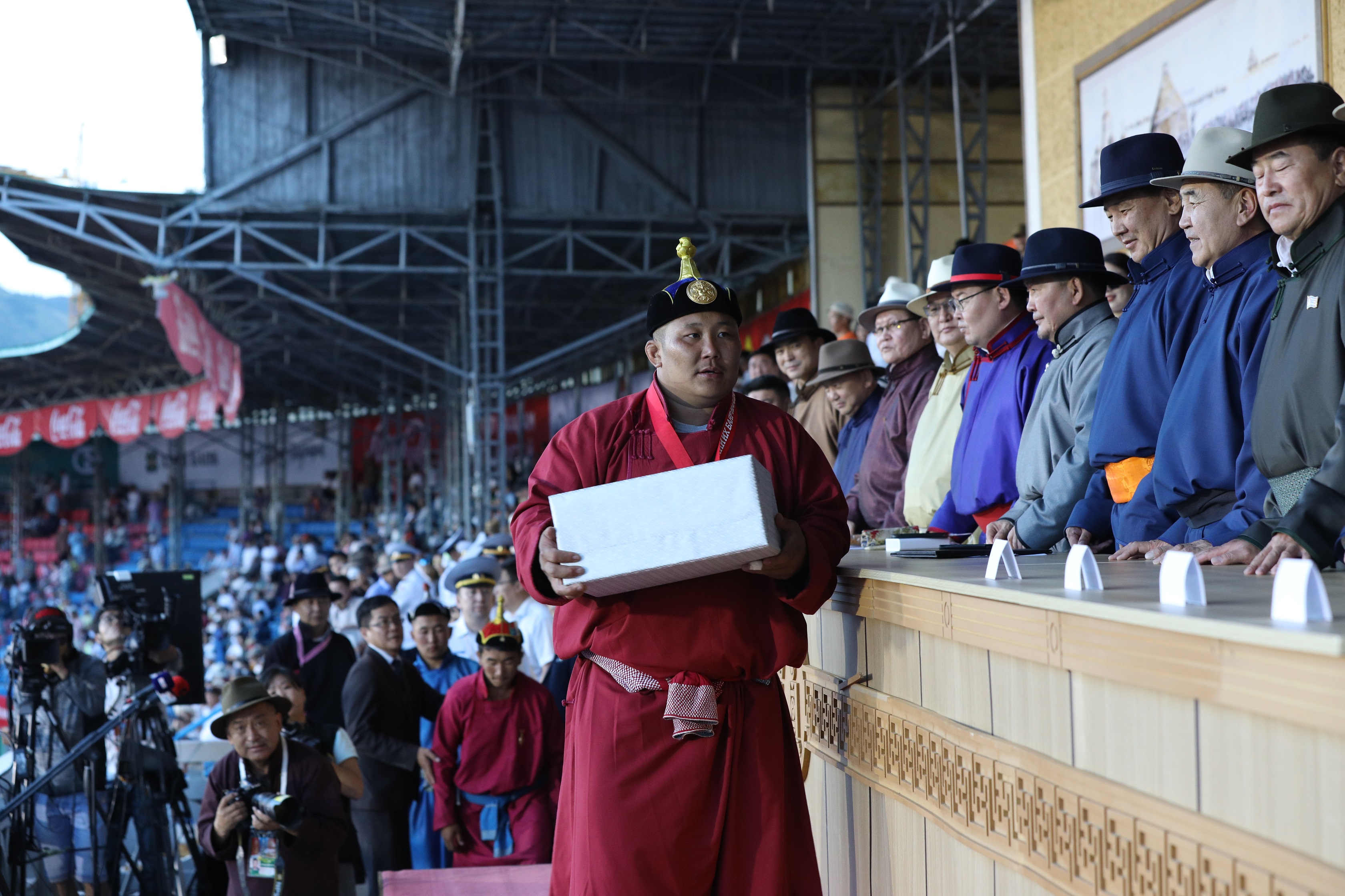 Улсын аварга Н.Батсуурь Монгол Улсын Ерөнхийлөгч Х.Баттулгаас бай шагналаа авсаныхаа дараа Монголын ард түмэндээ хандан мэндчилгээ дэвшүүлсэн юм. Тэрбээр “Баяр наадам маань сайхан боллоо. Монголчууд маань өргөн дэлгэр наадлаа. Миний хувьд энэ жил шударга эрэмбийн төлөө барилдаж өнөөдөр аваргуудаас эрэмбээрээ дээр гарсандаа баяртай байна. Үнэн ялах байх. Найраагүй наадъя урианы хүрээнд сайхан наадлаа. Нутгийнхаа аварга ахтай харгүй сайхан барилдаж давлаа. Монгол зон олон минь сайхан наадаарай” гэлээ.