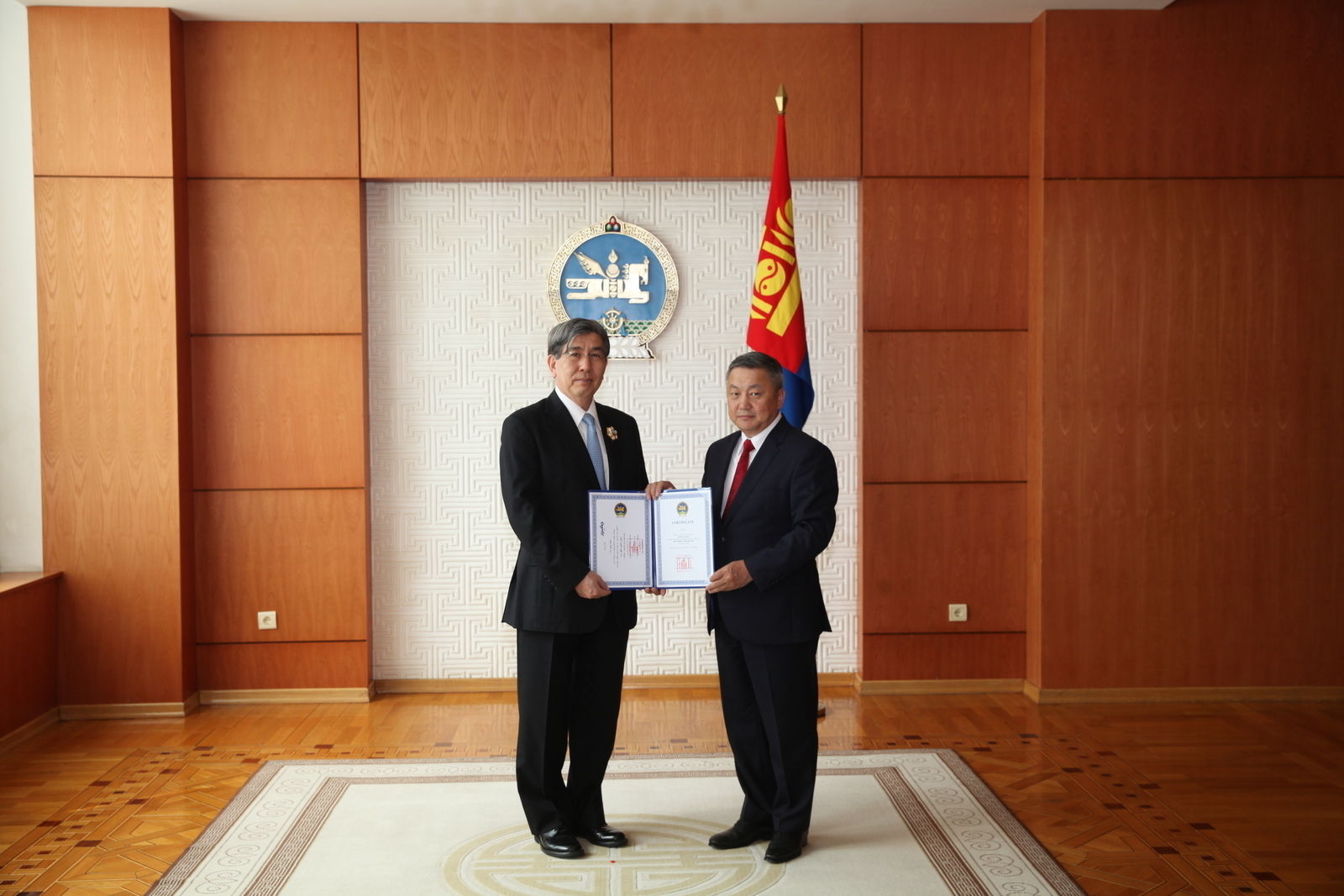 Шагналыг Монгол Улсын Ерөнхийлөгчийн Тамгын газрын дарга З.Энхболд өнөөдөр гардуулав. Азийн хөгжлийн банкны Ерөнхийлөгчийн Ахлах зөвлөх Аюүми Кониши нь 1991 оноос Монголын эдийн засгийн шинэчлэлтийн төслүүд дээр ажиллажээ.