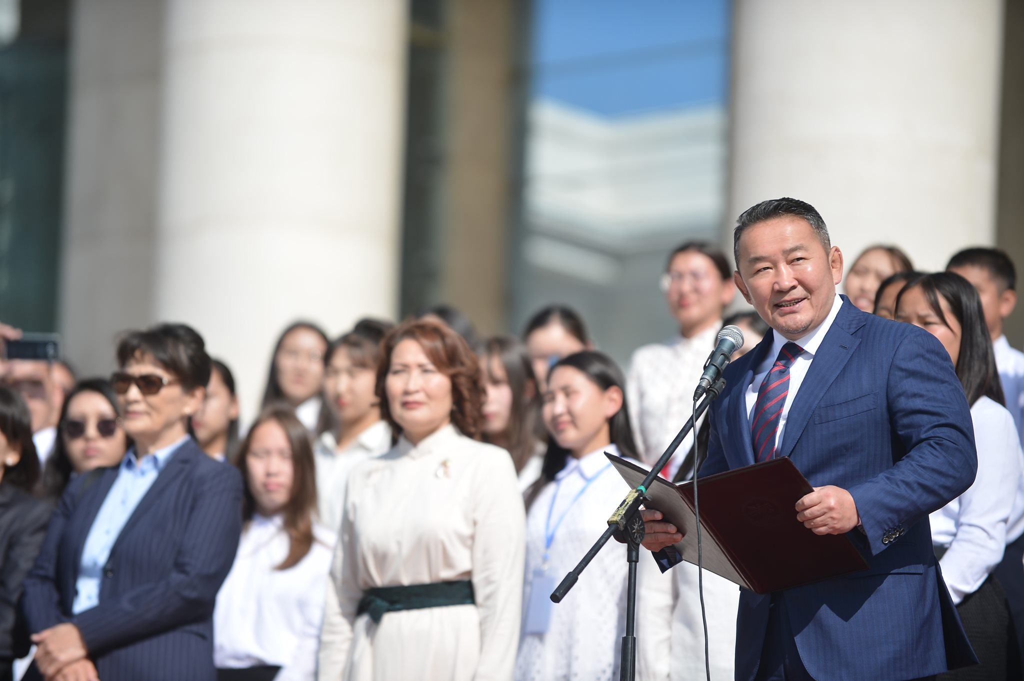 Монгол Улсын Ерөнхийлөгч Х.Баттулга “Эрдэмтэн багш, оюутан, залуус та бүхний энэ өглөөний амрыг эрэн мэндчилье. Монгол Улсын Ерөнхийлөгчийн Бодлого, үйл ажиллагааны хөтөлбөрийн хүрээнд Монголын хүүхэд багачууд, оюутан залуусын хөгжлийг дэмжих, тэдний чөлөөт цагийг зөв боловсон өнгөрүүлэх, эх оронч үндэсний үзэл бүхий хүмүүжилтэй иргэн болгож төлөвшүүлэх зорилготой “Монголын ирээдүй” хөтөлбөрийн хүрээнд олон төсөл, дэд хөтөлбөрүүдийг өнгөрсөн хугацаанд бид хэрэгжүүлээд байна.