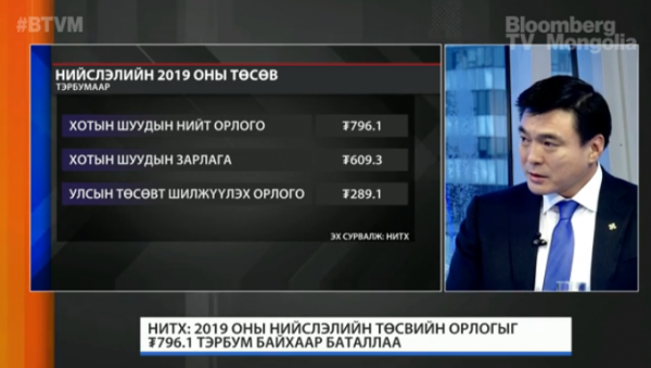 Нийслэлийн ИТХ-ын ээлжит XX хуралдаанаар Нийслэлийн 2019 оны төсвийг баталсантай холбоотойгоор НИТХ-ын дарга С.Амарсайхан Bloomberg телевид уригдан оролцож 2019 оны Нийслэлийн төсвийн талаарх мэдээлэл өглөө.