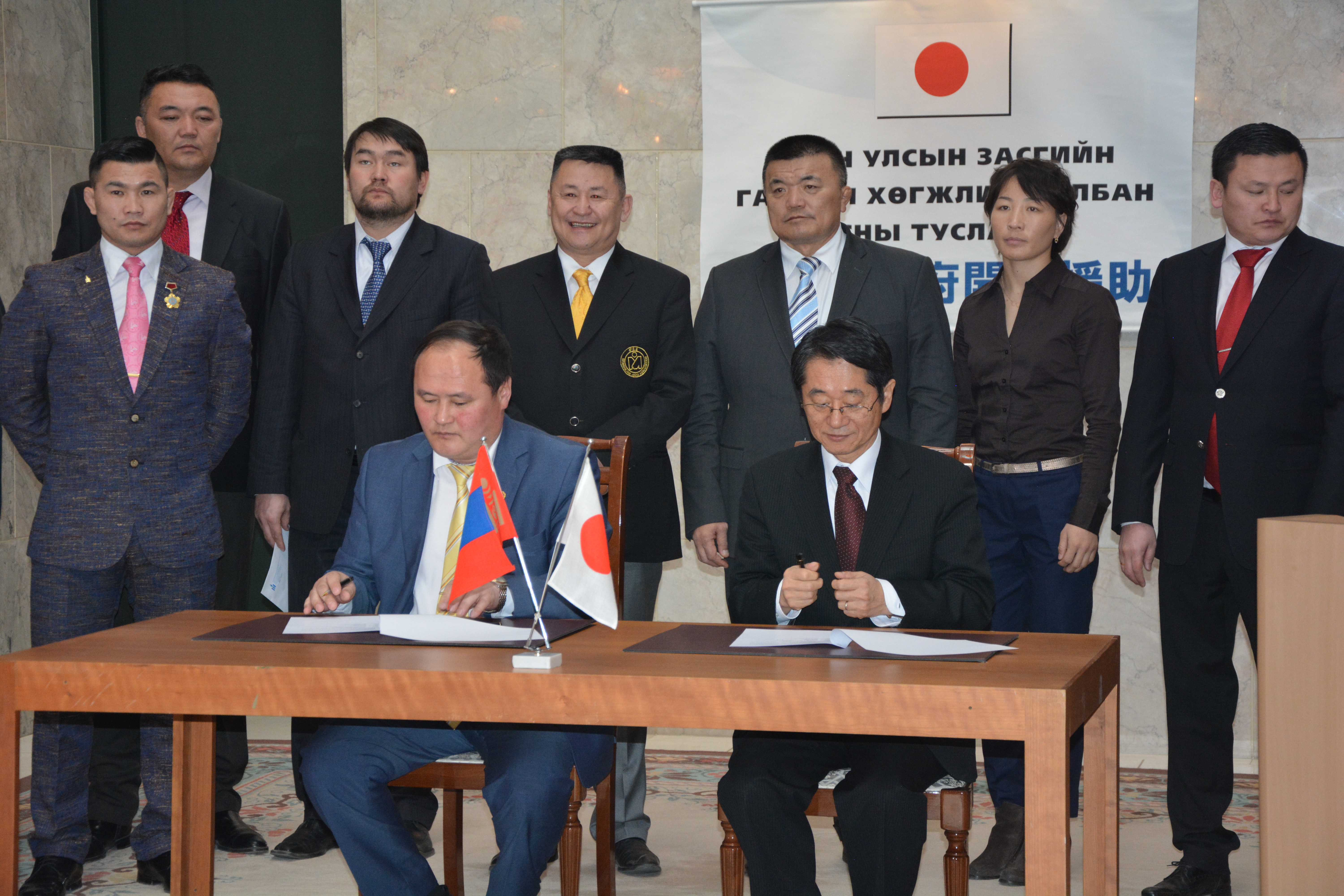 DSC_0194Өнөөдөр Монгол дахь Японы  элчин сайдын яаманд Япон Улсын Засгийн газрын “Соёлын өвсний үндэс” буцалтгүй тусламжийн хүрээнд хэрэгжих  “Ховд аймагт баруун бүсийн жүдогийн төв барих төсөл”- ийн гэрээнд гарын үсэг үзэглэх ёслол боллоо. Япон улсаас Монгол Улсад суугаа Онц бөгөөд Бүрэн эрхт Элчин сайд Такэнори Шимизү, Ховд аймгийн Засаг даргын орлогч Ч.Чинбат нар гэрээнд гарын үсэг зурсан бөгөөд Монголын жүдо бөхийн холбооны тэргүүн дэд Ерөнхийлөгч Ш.Адьшаа тэргүүтэй холбогдох хүмүүс оролцов.