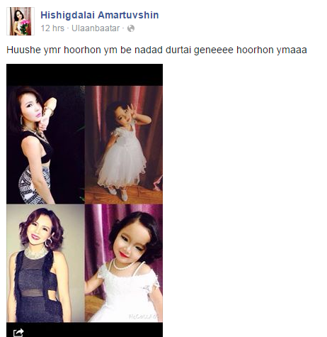 Сүүлийн үед уран бүтээлээсээ хөндийрөөд байгаа дуучин Хишигдалайтай өөрийн цахим хуудсан дээрээ надад дуртай гэнээ хөөрхөн юмаа гээд нэгэн өхөөрдөм охиний зургийг оруулжээ
