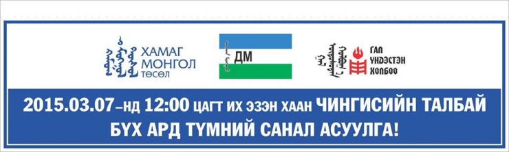Хамаг Монгол төслийн удирдагч, МУГЖ С.Жавхлан, “Гал үндэстэн” холбоо, цахим орчинд эвлэлдэн нэгдсэн залуусын ДМ нэгдэл хамтран энэ сарын 7-нд Чингисийн талбайд жагсаал зохион байгуулахаар болжээ.