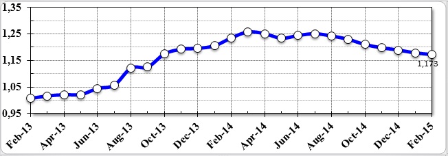 2015 оны 2 дугаар сарын байдлаар орон сууцны үнэ өмнөх сараас 0.5%, өнгөрсөн оны мөн үеэс 5.1%, сүүлийн 7 сард 6.3% буюу сард дунджаар 0.9%-иар буурсан байна.