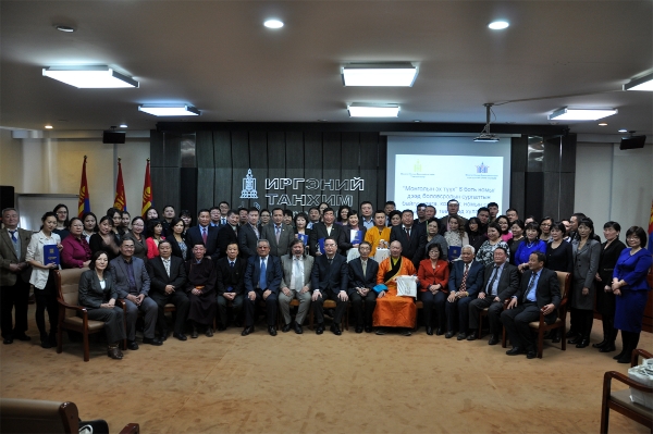 Нийслэлийн дээд боловсролын байгууллага, коллеж, номын сан зэрэг нийт 80 байгууллагын төлөөлөл Монголын эх түүхийн 6 боть номыг гардан авлаа.