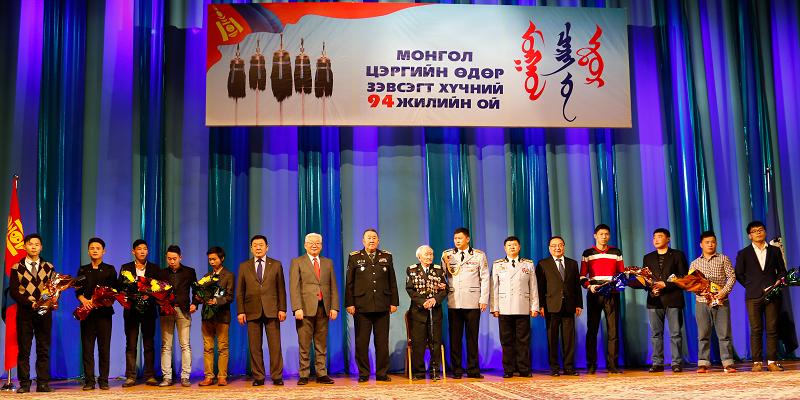 Монгол цэргийн өдөр, Зэвсэгт хүчний 94 жилийн ойд зориулсан Батлан хамгаалах хууль тогтоомжийг сурталчлах, төрийн үйлчилгээг иргэдэд хүргэх, Монгол цэргийн жавхаа уралдааныг сурталчлах, Цэргийн штабуудын иргэдэд ажлаа танилцуулах өдөрлөг, “Ахмад, залуучуудын 3 үеийн уулзалт” боллоо. Энэхүү арга хэмжээнд УИХ-ын гишүүн, Батлан хамгаалах яамны сайд Ц.Цолмон, нийслэлийн Засаг дарга бөгөөд Улаанбаатар хотын Захирагч Э.Бат-Үүл, нийслэлийн удирдлагууд, Батлан хамгаалах яам, Зэвсэгт хүчний Жанжин штабын төлөөлөл, ахмад дайчид оролцов. Арга хэмжээг нээж Хотын дарга Э.Бат-Үүл “Энд хүрэлцэн ирсэн та бүхэндээ Монгол цэргийн баярын мэндийг өргөн дэвшүүлье. Мөн ахмад дайчиддаа нийслэлчүүдийнхээ нэрийн өмнөөс өдий зэрэгтэй ийм сайхан эх орныг бидэнд хүлээлгэж өгсөнд нь талархлаа илэрхийлье. Би УИХ-ын гишүүн байхаасаа Монгол цэргийн нэр хүнд, цог жавхааг өргөх чиглэлээр идэвхитэй үйл ажиллагаагаа явуулж ирсэн. Тухайлбал, Цэргийн баяр гэж нэрлэдэг байсан Зэвсэгт хүчний баярыг Монгол цэргийн баяр гэдэг ийм өргөн хүрээтэй түүхэн уламжлалаа дээдэлсэн баяр болгон өөрчлөх тухай, УИХ-ын гишүүн асан Ж.Гүррагчаатай хамтран Монголд төрийн жинхэнэ албан хаагчийг зөвхөн төрийн жинхэнэ алба хаасан залуучууд хаших болно гэдэг хуулийн төслийг санаачлан УИХ-аар хэлэлцүүлж, батлуулж байсан. Мөн нийслэлийн Засаг даргын зүгээс нийслэлийнхээ удирдлага, Цэргийн штабтай хамтарч “Монгол цэргийн жавхаа” арга хэмжээг санаачилж зохион байгуулаад гурван жил болж байна. “Монгол цэргийн жавхаа” арга хэмжээ маань үнэхээр үр дүнгээ өгч байгаа. Хэд хэдэн удаа өөрийн биеэр цэргийн ангиудаар гэнэтийн шалгалт хийсэн. Цэргийн ангиуд сайхан тохижиж, үйл ажиллагаа нь жигдэрсэн байгааг харахад үнэхээр гайхалтай байсан. Зэвсэгт хүчин бол залуучуудыг эх оронч үзлээр хүмүүжүүлэх сургууль юм. Цэргийн алба хаагаад ирсэн иргэн амьдралаа зөв зохион байгуулах чадвартай, бие бялдрын хөгжилтэй, захирч, захирагдах ёсыг сурсан байдаг. Ийм иргэдийг бий болгож байгаа Зэвсэгт хүчинд бүх талаар дэмжлэг үзүүлэхэд бэлэн байна. Мөн “Монгол цэргийн жавхаа” арга хэмжээ маань уламжлал болон тогтож байгаад таатай байна. Манай нийслэлийн хамгийн сайхан арга хэмжэээнүүдийн нэг болж байгаад баяртай байдаг. Та бүгдэд талархлаа дахин дахин илэрхийлье” гэлээ.