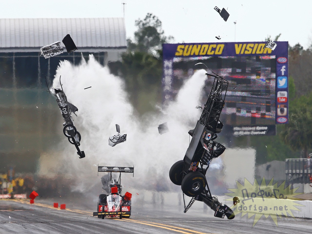 Дэлхийн хамгийн аюултай уралдааны нэгд тооцогдох Драг уралдааны үеэр маш том осол гарчээ. Ослын шалтгаан нь 450 км/ц -ийн хурдтай явж байсан уралдааны машины хажууд гэнэт саад гарч ирсэнээс машиных удирдлагыг алдсан байна. Уралдааны машины жолооч Ларри Диксоны биеийн байдлын талаар одоогоор мэдээлэл хийгээгүй байна.