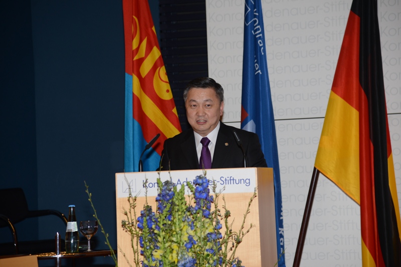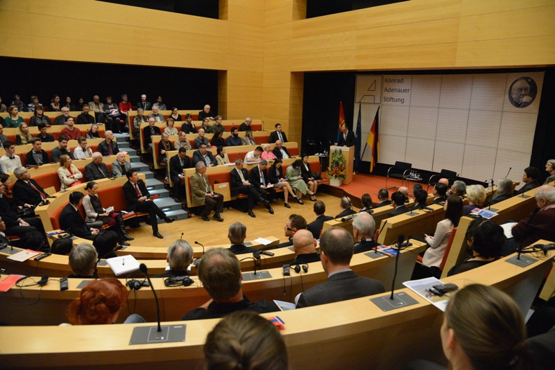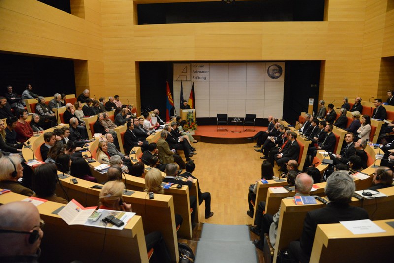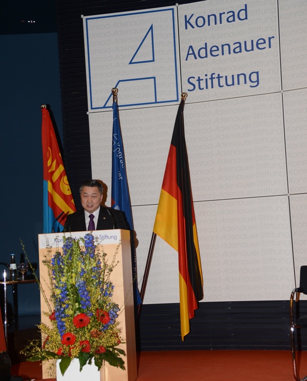 Конрад-Аденауэрын сан 1993 оноос хойш Монгол Улсад үйл ажиллагаа явуулж эхэлсэн. Би энэхүү танхимд өмнө нь ирж мөн улс төрийн намын туршлагаас судлах завшаан тохиож байсан. Иймд тус сангийнханд өнгөрснөөс өнөөдрийг хүртэл үргэлжлүүлж буй үйл ажиллагаанд нь талархал илэрхийлье.