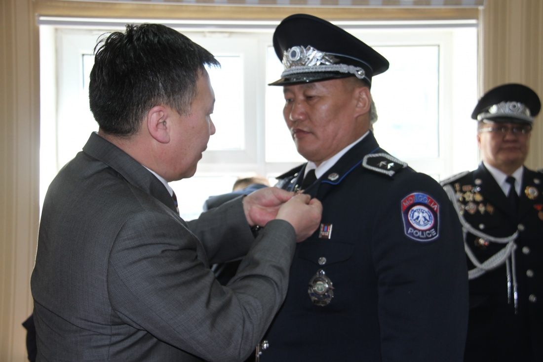 Цэргийн гавьяаны улаан тугийн одонгоор УБ хотын цагдаагийн газрын дарга, туслах комиссар Чойжанцангийн Болдбаатар, Цагдаагийн байгууллагын ахмад ажилтан, бэлтгэл хурандаа Дугаржавын Майсүрэн, УБ хотын ЦГ-ын ахмадын зөвлөлийн гишүүн, бэлтгэл хурандаа Чойжилын Ганболд нарыг шагнасныг ЦЕГ-ын дарга,Тэргүүн комиссар Р.Чингис гардууллаа.