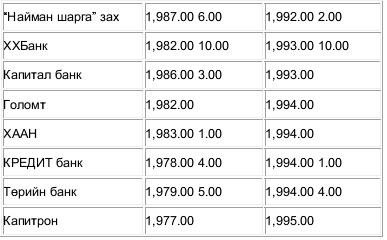 Он гарсаар ам.долларын ханш байнгын өсөлттэй гарч, өчигдрийн байдлаар “Найман шарга” валют арилжааны төв дээр ам.долларыг 1987 төгрөгөөр авч, 1992 төгрөгөөр зарж байна.