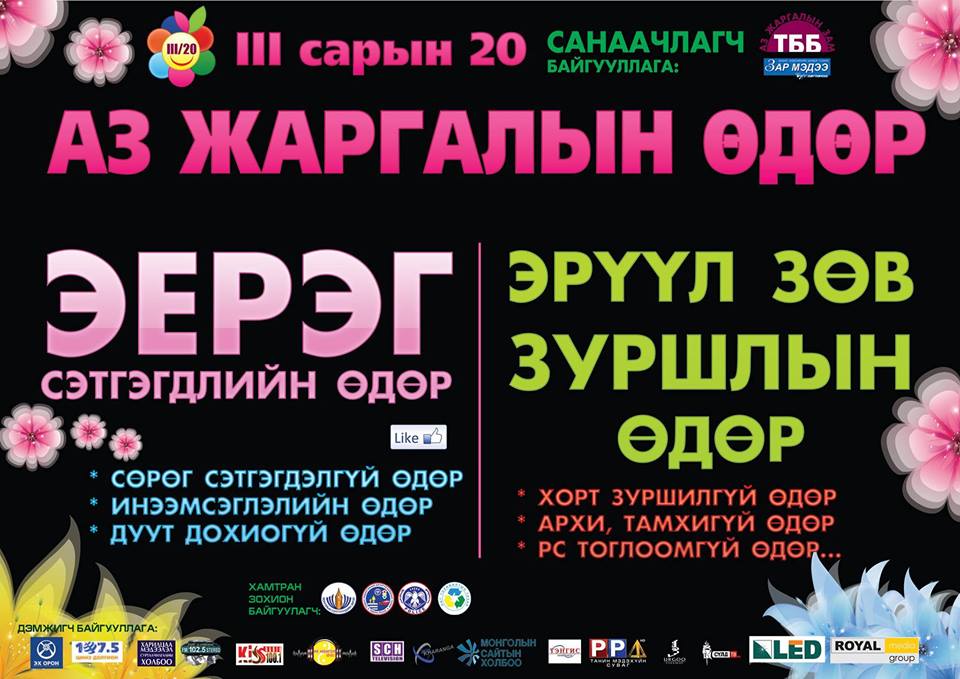 11076130_451400351680586_498633805_nДэлхийн “Аз жаргалын өдөр” маргааш буюу 03 сарын 20-нд тохионо. Эл өдөртэй холбогдуулан “Аз жаргалын зам” ТББ-аас өнөөдөр мэдээлэл хийлээ.