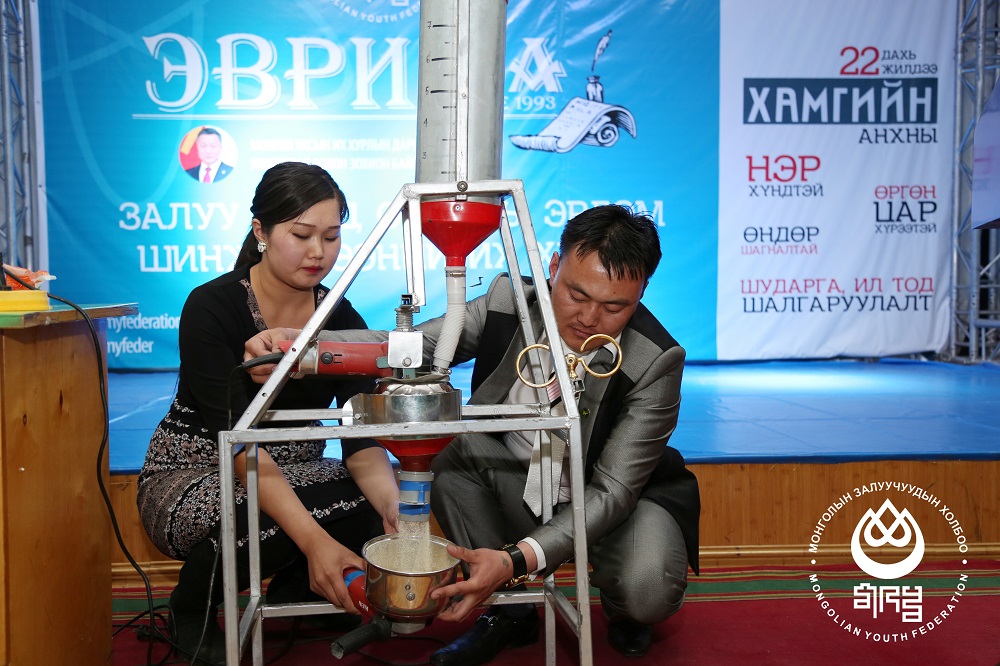 Экологи ХАА-н салбар хуралдаанд 1-р байр ХААИС-ийн Инженер, технологийн сургуулийн оюутан З.Түвшинтөр, шилдэг багш ХААИС-ийн МААБС-ийн багш Г.Энхманлай,