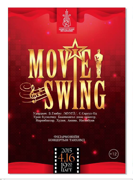 11129864_10206528921202254_434175723_oДэлхийн болон монголын шилдэг киноны дуу хөгжмүүд эгшиглэх “MOVIE SWING” тоглолт 2015 оны 04 сарын 16-ны 19 цагт Улсын Филармонийн концертын танхимд ганцхан удаа тоглох гэж байна.