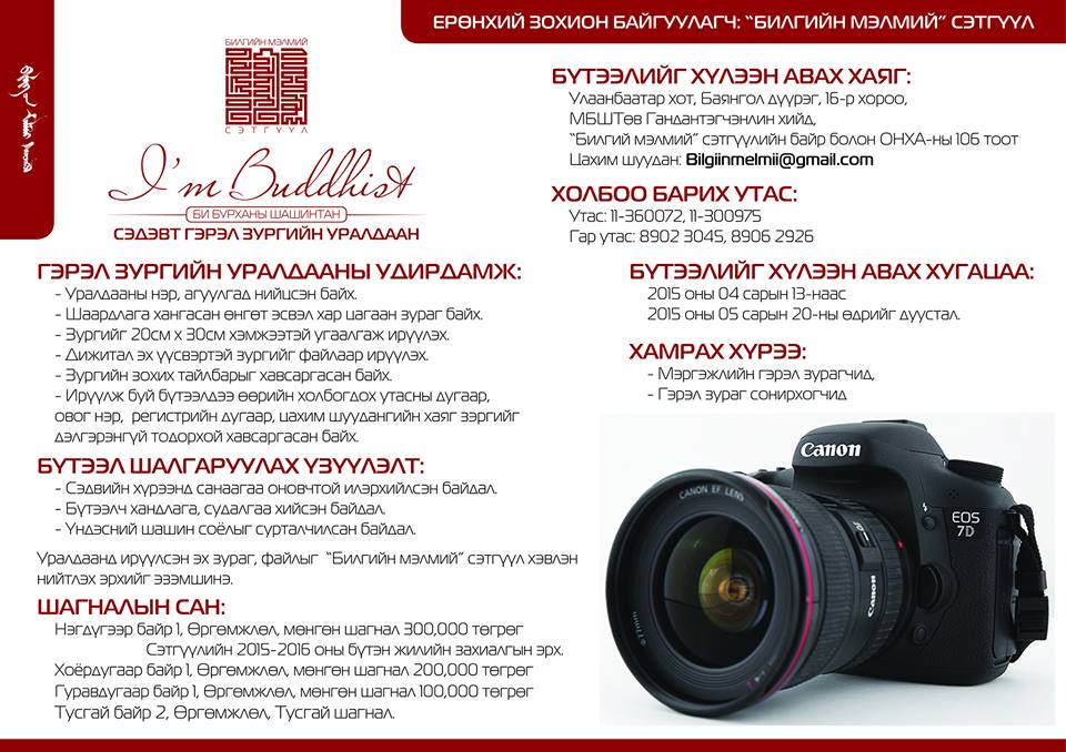 Тэгвэл тус сэтгүүлийн зүгээс мэргэжлийн гэрэл зурагчид, гэрэл зураг сонирхогчдын дунд “Би бурханы шашинтан” сэдэвт гэрэл зургийн уралдааныг зарлаж байна.