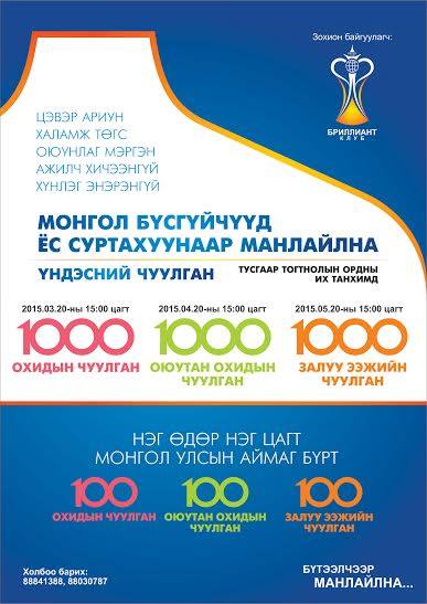 posterНийгэм, цаг үедээ бүтээлч манлайллыг бий болгож яваа залуу бүсгүйчүүдийн “Бриллиант” клубээс “МОНГОЛ ЭМЭГТЭЙЧҮҮД ЁС СУРТАХУУНААР МАНЛАЙЛНА” үндэсний хэмжээний 10 000 эмэгтэйн чуулганыг Монголд анх удаа цувралаар зохион байгуулж байгаа билээ.
