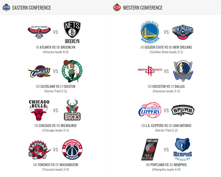 Америкийн үндэсний сагсан бөмбөгийн 2014-2015 оны улирал дуусаж аваргын төлөө өрсөлдөх найман багийн нэрс тодорлоо. Стив Кэррээр удирдуулсан “Голдэн Стэйт Уорриорс” багөрнөд бүсийг тэргүүлж байгаабол тэдний өрсөлдөгч баг “Нью-Орлэйн Паликанс”өнөөдөр “Сан Антони Спөрс” багийг талбай дээрээ буулган авчээ. Тус хоёр баг энэ улиралд дөрөв таарсан бөгөөд гуравт нь “Уорриорс” хожиж байжээ.