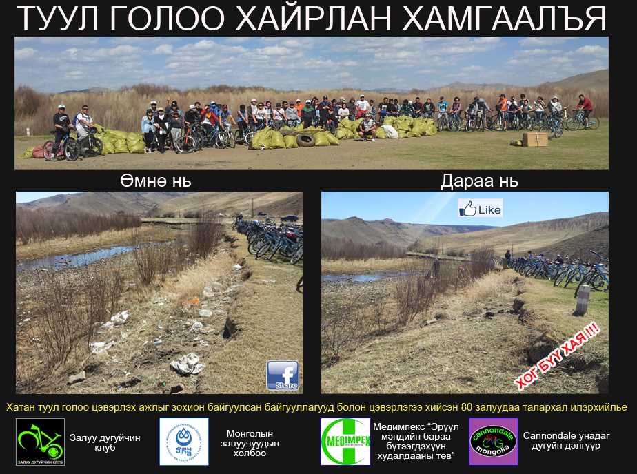 Тийм учраас Монголын Залуучуудын холбооны дэргэдэх “Залуу дугуйчин” клуб 3 дахь жилдээ “Хатан туул голоо хайрлан, Хамгаалъя” аянаа эхлүүлж, Туул голын эрэг орчмыг энэ Ням гарагт буюу 2015. 04. 26-нд цэвэрлэхээр болжээ. Хатан туул голоо цэвэрлэх ажилд нэгдэхийг хүссэн залуус https://www.facebook.com/events/932322713485817/ эвент хаягаар бүртгүүлж, дэлгэрэнгүй мэдээлэл аваарай. Залуус маань энэхүү ажилд оролцсоноор Туул голын ойр орчмыг цэвэрлэж, унадаг дугуйгаар аялж, тоглож, хоорондоо танилцаж, амралтын өдрийг зугаатай өнгөрүүлэх юм. Жилээс жилд татарч, харахад ч нүд хальтрам болж байгаа Хатан Туулаа хайрлан хамгаалцгаая.