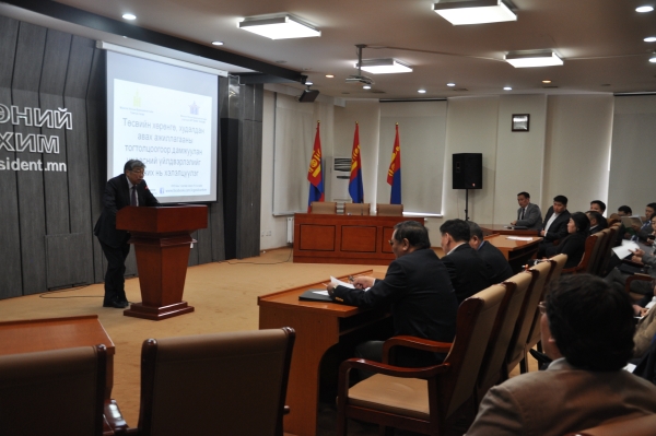 Монгол Улсын Ерөнхийлөгчийн дэргэдэх Иргэний танхимд өнөөдөр Төсвийн хөрөнгө худалдан авах ажиллагааны тогтолцоогоор дамжуулан үндэсний үйлдвэрлэлийг дэмжих нь сэдэвт хэлэлцүүлэг боллоо. Уг хэлэлцүүлгийг Ерөнхийлөгчийн Иргэний оролцоо, эдийн засгийн бодлогын зөвлөх Л.Дашдорж хөтлөн явуулсан юм.