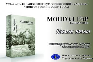 Шинжлэх ухаан технологийн сангаас санхүүжүүлж ШУА-ийн Түүх, Археологийн хүрээлэнгийн хэрэгжүүлсэн “Монгол гэр” төслийн үр дүн “МОНГОЛ ГЭР” ТАЙЛБАР ТОЛЬ номын нээлт болно.