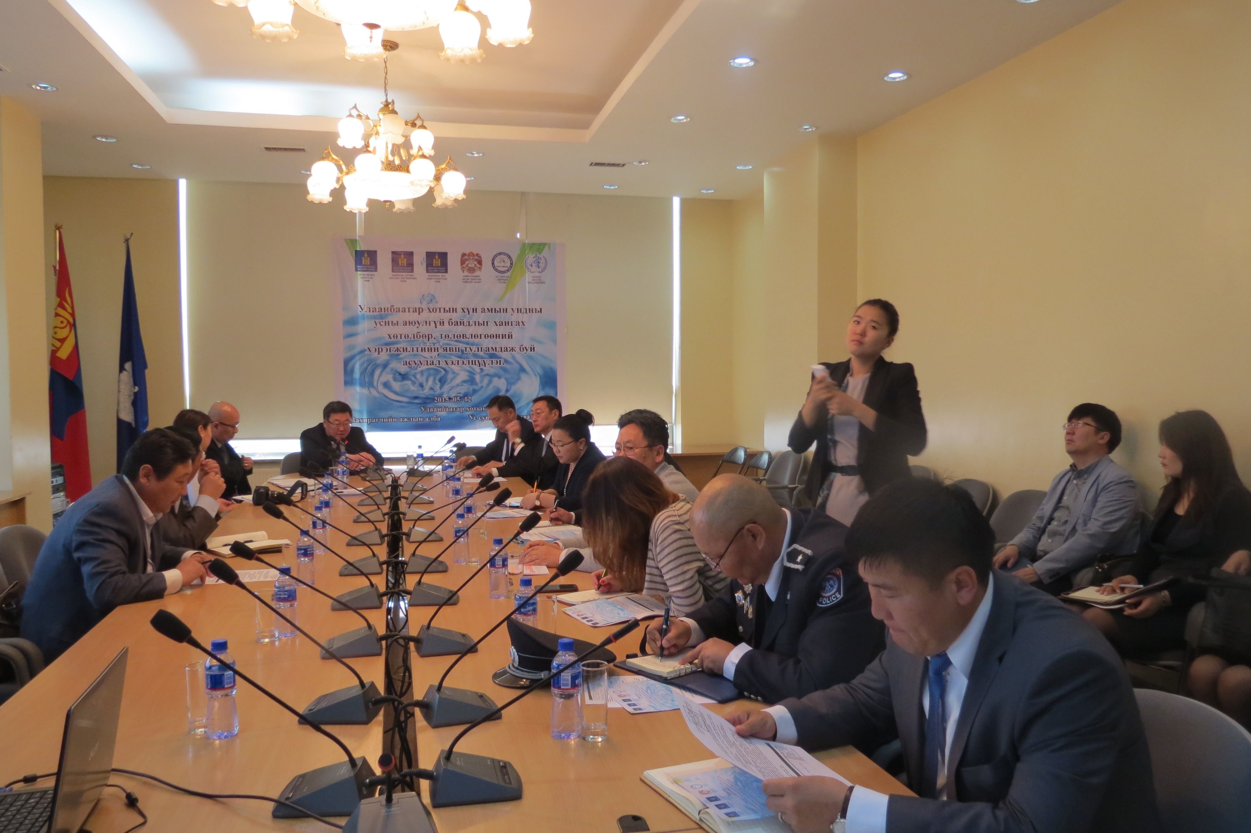Ус сувгийн удирдах газар, хүн амын ундны усны чанарт холбогдох байгууллагууд ундны усны аюулгүй байдалд анхааран ажиллаж байгаа гэдгийг дурьдав. Гэсэн хэдий ч гэр хорооллын иргэдийн хэрэглэж буй ус зөөдөг шар сав нь химийн бодис хийдэг зориулалттай бөгөөд энэ нь хүний эрүүл мэндэд сөрөг нөлөөтэй юм. Тиймээс цаашид ундны усны чанарт нөлөөлөхгүй чанарын шаардлага хангасан усны саваар гэр хорооллын иргэдийг хангахаар төлөвлөж байна. Мөн усны машины шланканд бохирдол үүсдэг учраас усаа саванд хийж зөөвөрлөн хүргээд шланкаар татаж түгээдэг системд шилжинэ гэх мэт одоо хийх гэж байгаа ажил болон цаашид хийж хэрэгжүүлэх ажлын талаар танилцууллаа. Хэлэлцүүлэгт оролцогчид Дэлхийн эрүүл мэндийн байгууллагын санал зөвлөмжийн дагуу хийсэн энэхүү хөтөлбөр нийслэлийн иргэдийн эрүүл мэндийг хамгаалах чухал хөтөлбөрийн нэг гэдгийг онцлон хэлж байв. Нийслэлийн ус хангамжийн системд техник технологийн шинэчлэл хийж, хүн амын ундны усны нөөц, чанар аюулгүй байдалд хяналт тавих хэрэгтэй гэдэгт санал нэгдэж, цаашид авах арга хэмжээний санал боловсруулан нийслэлийн удирдлагуудад танилцуулахаар боллоо