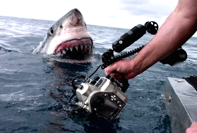 filmmakers-capture-terrifying-great-white-shark-up-closeТехник технологи хөгжсөн өнөө үед кино хийнэ гэдэг маш амархан гэж зарим нэгэн хүн бодох байх. Гэтэл үнэндээ компьютер графикаар хийхээс илүү бодит мэдрэмжийг төрүүлэхийн тулд бодит зураг авах нь кино бүтээгчдийн туйлын зорилго байдаг. Ялангуяа зураглаачид аймшигт араатантай ч нүүр тулах хэрэг гардаг аж. Далайн хамгийн аюултай махчин амьтан бол яахын аргагүй акул. Энд үзүүлж байгаа зурган дээр зураглаач маань акулын өөдөөс айдасаа даран байж камераа барин зогсоно. Энэ л киног хамгийн гайхамшигтай болгодог зүйл билээ. Дэйв Риггс Өмнөд Австралийн цагаан акулын талаар баримтат кино бүтээхээр шийдсэн байна. Тэрээр энэ акулыг бараг долоо хоног дагаж зургыг нь авчээ. Акул нь 4 метр 57 см гаруй урттай аварга махчин загас юм. Түүний зургыг авахын тулд тэрээр амиа хүртэл гаргуунд нь гаргасан байна.