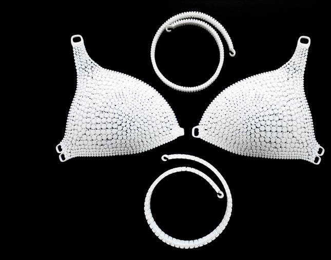 АНУ-ын Бруклинд ажиллаж амьдардаг технологич, дизайнер Мэри Хуанг гурван хэмжээст технологийн чиглэлээр олон сонирхолтой бүтээл урлажээ. Тэдгээрийн нэг нь уян хатан агаад усны хамгаалалттай “N12” бикини юм. Гурван хэмжээст технологийн “SLS” процессоор үйлдвэрлэгдсэн бикини нь ердөө 0.7 мм зузаантай гэнэ. Хэрэв хүсвэл захиалгаар худалдаж авах боломжтой ба үнэ нь $200 – $300 ам.доллар байх ажээ.