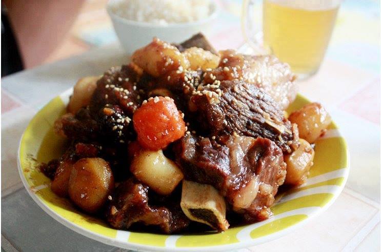 За тэгээд махаа хангалттай зөөлөрсөн гэж үзвэл махан дээрээ төмс ногоогоо хийгээд дээрээс нь үхрийн хавиргатай мах амталдаг бэлэн амтлагч юм уу эсвэл өөрийн хийсэн амлагчаа хийнэ. Битүү чанагчаар чанасан бол тусад нь өөр саванд хийгээд чанасан шөлнөөсөө нэг аяга хэртэйг аваад махтайгаа хамт хийгээрэй. Учир нь төмс ногоогоо энэ шөлөөрөө болгох юм.
