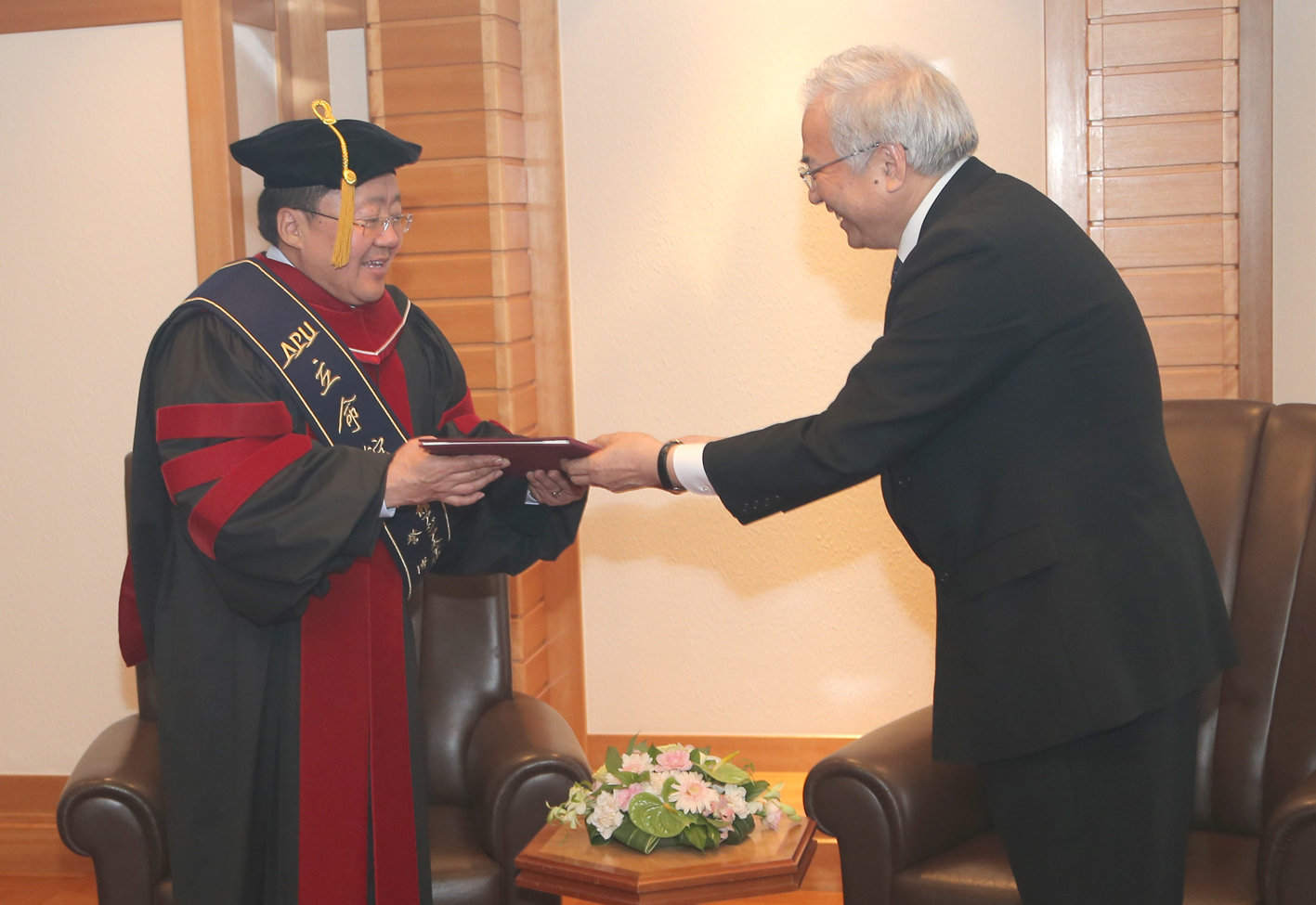 Өнөөдөр Монгол Улсын Ерөнхийлөгч, Эрхэмсэг Ноён Цахиагийн Элбэгдорж Танд Рицүмэйкан Ази, Номхон далайн их сургуулийн Хүндэт Докторын цол олгож байгаа нь бидний хувьд асар их нэр төрийн хэрэг билээ.