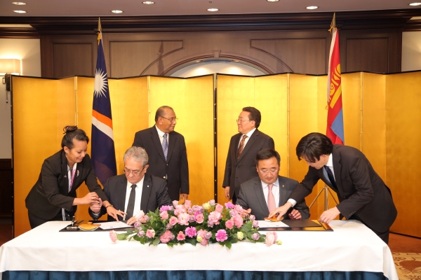 Монголын талаас Гадаад хэргийн сайд Л.Пүрэвсүрэн, Маршаллын Арлуудын Бүгд Найрамдах Улсын талаас Гадаад хэргийн сайд Тони Брам нар гарын үсэг зурлаа.