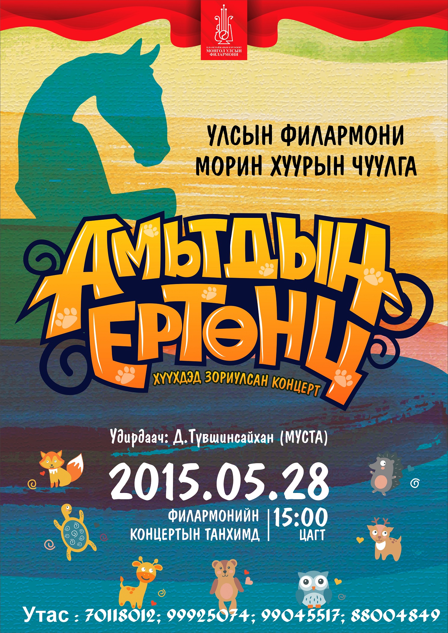 Тоглолт: 2015 оны 5 дугаар сарын 28-нд Улсын Филармонийн танхимд 15 цагт