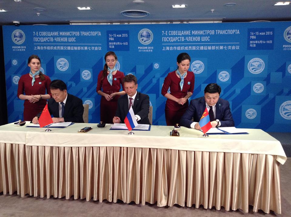 uulzalt2ШХАБ-ын гишүүн орнуудын Тээврийн сайд нарын 7 дугаар уулзалтын хүрээнд 2015 оны 5 дугаар сарын 15-ны өдөр анх удаагаа Монгол Улс, ОХУ, БНХАУ-ын Тээврийн сайд нарын гурван талт уулзалт болов.