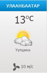 УЛААНБААТАР ХОТ: Үүл багасна. Бороо орохгүй. Салхи баруун хойноос секундэд 6-11 метр. Сэрүүсч 12-14 градус дулаан байна.