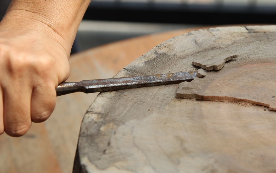 Эхний ээлжинд өндөр нь хүн суухад тохирсон түлээний тайрдас хэрэгтэй. Хуурай мод байх нь илүү тохиромжтой. Энэхүү модоо будахад бэлтгэж элсээр зүлгэх эсвэл өнгөн хэсгийг цүүз, аль тохиромжтой багажийн тусламжтайгаар хуулан авах хэрэгтэй.