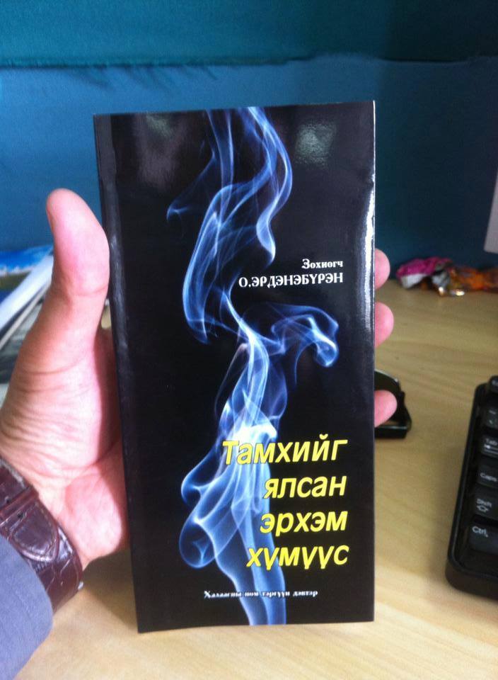 Тамхи бол ганцаардсан хүнд хань, гутарсан нэгэнд тайтгарал, заримд нь чамирхал ч болдог гэсэн яриа бий. Хэдийгээр хүний биед муу хорт зуршил гэдгийг хүн бүр цээжээр мэддэг хэрнээ түүнээс салж чаддаггүй. Харин өөрийн хорт зуршлаа зориглон хаяж, түүгээр зогсохгүй бусдад үлгэрлэн шүлэг зохиож, ном бичсэн зохиогч О.Эрдэнэбүрэнгийн цоо шинэ халаасны ном хэвлэлтээс гарчээ. Зохиогч “Тамхинаас гарахад хүндэтгэх шалтгаан хэрэгтэй” гэсэн аавынхаа нийтлэлийг уншаад тамхинд зориулан шүлэг бичиж, түүнийгээ хүмүүст хүргэсэн байна. Мөн тамхинаас гарснаа зарлан тунхаглаж, өөрийнх нь хэлсэнчлэн “ичсэн нүүрэндээ” хорт утаанаас салж чаджээ. Тэрээр өөрийнхөө түүхээс гадна тамхинаас гарч чадсан олны танил шигшмэл есөн хүний түүхийг номондоо оруулсан байна. Тухайлбал, гавьяат жүжигчин Л.Чаминчулуун, ард түмэнд “90 саяын” хэмээн алдаршсан Б.Гансүх, Соёлын тэргүүний ажилтан, жүжигчин М.Дорждагва, “3 бүдүүн” хамтлагийн дуучин П.Эрдэнэ, Говь-Алтай нутгаараа овоглодог дуучин Н.Энхбат, УИХ-ын гишүүн Ц.Дашдорж, “Болор цом”-ын эзэн, модернист яруу найрагч Б.Галсансүх нарын эрхмүүдийн тамхитай хэрхэн нөхөрлөсөн хийгээд түүнээс хэрхэн салсан талаах зузаан түүхээс уншигчдад хүргэсэн нь тун сонирхолтой өвөрмөц халаасны ном болжээ. Сэтгүүлч, яруу найрагч О.Эрдэнэбүрэн номынхоо нээлтийг дэлхийн нийтээр тэмдэглэн өнгөрүүлдэг тамхигүй өдөр буюу тавдугаар сарын 31-нд бөхийн өргөөний ард талын гадаах талбайд хийх ажээ. Тамхигүй өдрийг угтан тухайн өдөр өглөө 10-19 цагийн хооронд номыг 50 хувийн хөнгөлөлттэй үнээр буюу 2500 төгрөгөөр тамхинаас гарахаар төлөвлөж яваа болон гарах шалтгаанаа олохгүй яваа хүмүүст зориулан зохиогч өөрийн гарын үсэгтэй номоо дурсгах гэнэ. Номын нээлтийн талаар зохиогч хэлэхдээ “Би тамхийг найман жил татсан хүн. Татаж байх хугацаандаа тамхийг хаях гэж олон янзаар үзэж байсан. Гэвч тамхинаас гарч чаддаггүй байлаа. Гэтэл тамхинаас гарна гэдэг бол сэтгэлзүйн асуудал байдаг юм билээ. Тамхинаас шууд гарахаар уушги цоордог гэдэг дэл сул яриа байдаг. Зарим хүмүүс энэ худал үгээр бүр бизнес хийгээд утаагүй тамхи гэгч зүйлийг хэрэглэвэл тамхинаас гарна. Шууд гарах аюултай. Орчин үед хортой тамхинаас залуус татгалзаж хоргүй шингэн тамхийг залуус янз бүрийн амттайгаар нь төлхүү хэрэглэнэ гэх мэтийн залуусийг хоргүй тамхи гэж рекламдуулж аманд нь зуулгуулж байгаад эцэстээ нэг л өдөр жинхэнэ тамхи татаж үзэх сонирхолыг нь төрүүлэх далд оролдлогыг хийж байна. Тийм учраас өөрийн биеээр тамхийг хаяж шууд гарч болдогийг нь мэдэрсэн учраас олны танил бусдад үлгэр жишээ болчихоор эрхэм хүмүүстэй уулзаж тамхинаас хэрхэн ангижрах талаарх бодит амьдралынх нь түүхээс хуваалцаж, хөрөг нийтлэл бичиж тамхинаас гарахаар өдрийн бодол шөнийн зүүд болон яваа хүмүүст халаасны ном болгон хүмүүсийг тамхинаас ангижрахад нь туслах гол зорилгыг өвөртлөн явж байна. Номын нээлтийг бөхийн өргөөний гадна талбайд хийх болсон шалтгаан нь хүчтэй бяртай бөхчүүдийн өргөөний ойролцоо тамхийг ялж барилдаанаар бол дэвжээнд гарч тамхийг дал нураагаар нь унагаж чадсан эрхэм хүмүүс номын нээлтэнд оролцох учраас бэлгэдэж тухайн байршлыг сонгосон юм. Харин дараа жилийн энэ өдөр ялалтын талбайд Тамхийг ялсан эрхэм хүмүүс номыг биедээ авч явж уншиж тухайн номноос тамхийг ялан дийлэх хүч энергийг авч тамхинаас гарсан хүмүүсийн цугларалтыг хийх болно” гэв.