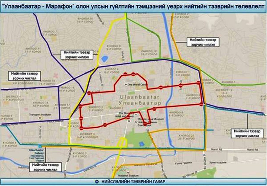 Монгол Улсын Засгийн газрын Олон улсын спортын тэмцээн, наадам зохион байгуулах тухай 325 дугаар тогтоол, Нийслэлийн Засаг даргын 2013-2016 оны үйл ажиллагааны хөтөлбөрт тусгагдсаны дагуу Найрсаг Улаанбаатар хөтөлбөрийн хүрээнд бүх нийтээр биеийн тамир, спортыг дэмжих зорилгоор жил бүрийн 6 дугаар сарын эхний долоо хоногийн бямба гарагийг “Автомашингүй өдөр” болгон “Улаанбаатар-Марафон” олон улсын гүйлтийн тэмцээнийг зохион байгуулдаг. Энэ жилийн олон улсын гүйлт 06 дугаар сарын 06-ны өдөр болох бөгөөд тухайн өдөр нийслэлийн зарим замын хөдөлгөөнийг хэсэгчилэн түр хааж, иргэдийг спортоор хичээллэх боломжийг олгох юм.