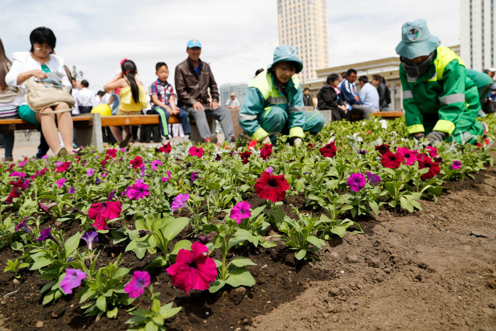 Дэлхийн ихэнхи метрополитан хотуудын гудамжийг нэг наст цэцгээр гоёдог жишгээр нийслэлийн өнгө үзэмжийг сайжруулах, тоосжилтийг багасгах зорилгоор 2013 оноос төв гудамжуудыг нэг наст цэцгэн мандалаар чимэх болсон. Жилийн дөрвөн улирал, уур амьсгалын эрс тэс нөхцлөөс шалтгаалж олон наст цэцэг тарих боломж байдаггүй байна. “Нийтийн үйлчилгээний Улаанбаатар нэгтгэл” ОНӨААТҮГ-аас 2015 онд нийт 200 000 шиэрхэг цэцэг тарихаар төлөвлөж, ажилдаа ороод байна. Эхний ээлжинд “Чингисийн талбай”-д 500М2 талбайг цэцэрлэгжүүлэх ажил дуусч байгаа бөгөөд нийслэлийн бүх авто замын шинэчилсэн уулзварын шороон арлуудыг цэцэгжүүлнэ. Нэг наст цэцэг тарихад нийслэлийн төсвөөс 200 орчим сая төгрөг зарцуулна гэж Нийтийн үйлчилгээний Улаанбаатар нэгтгэлээс мэдээллээ.