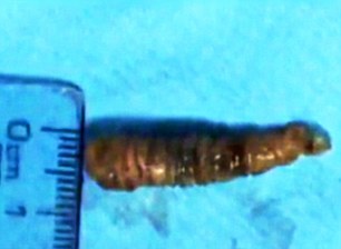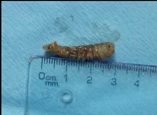 Pic shows: The worm. A teenager who had a worm in his eye for a month has had it successfully removed. Doctors in the Peruvian capital Lima used tweezers and basil leaves to pluck the one-inch worm from the 17-year-old’s eye which had become so badly swollen he could hardly see. The teenager who has been named as Jamie was infected with the worm after being bitten by a mosquito. The ophthalmologist who carried out the operation, Carolina Marchena, said the mosquito had had fly eggs on its legs and one of them had got into his eye after biting him. She added that the worm posed a serious risk to the boy's health because the swelling was near a sensitive part of the face from where infections could spread to the brain. She said: "The location of the worm from the lower lid, which was getting bigger, made the risks increase because the youth's tissue was swelling in an area close to the sinuses that's close to the delicate part which is the triangle of death." When the swelling first appeared, Jamie had gone to his local doctor in his home town of Pozuzo in central Peru where he was told it was cellulite. But after taking hundreds of different medicines which failed to work he was sent to the specialists in Lima who spotted the worm after taking an MRI scan. Dr Marchena said she decided to use basil leaves to lure the worm out because trying tweezers alone was more difficult. She laid the leaves around the boy’s eye and when the hungry worm stuck its head out she nabbed it with her tweezers and pulled the whole thing out. Jamie was later discharged and is said to be well. (ends)