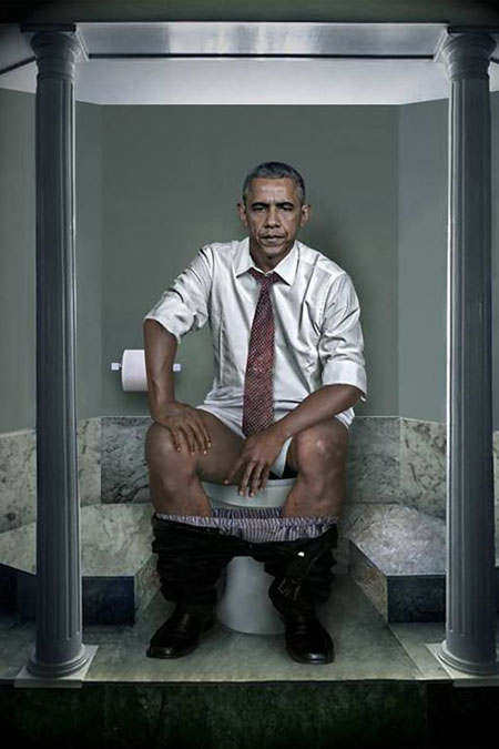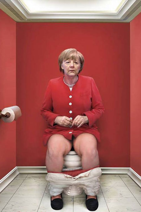 Тэгвэл Италийн уран бүтээлч Кристина Гуггери удирдагчдыг ариун цэврийн өрөөнд суусан байдалтайгаар дүрсэлжээ. Магадгүй бидний хэн нь ч чухал царайтай дэлхийн удирдагчдыг ийм байдалтайгаар төсөөлж байгаагүй биз. Цахим ертөнцийн зарим хэрэглэгчид эдгээр зургийг өдөөн хатгасан, үл хүндэтгэсэн хэмээн шүүмлээд амжжээ. Гэхдээ л тэд бидэнтэй адил хүн шүү дээ. Тэгэхээр тэд ариун цэврийн өрөө хэрэглэдэг л байж таарна.
