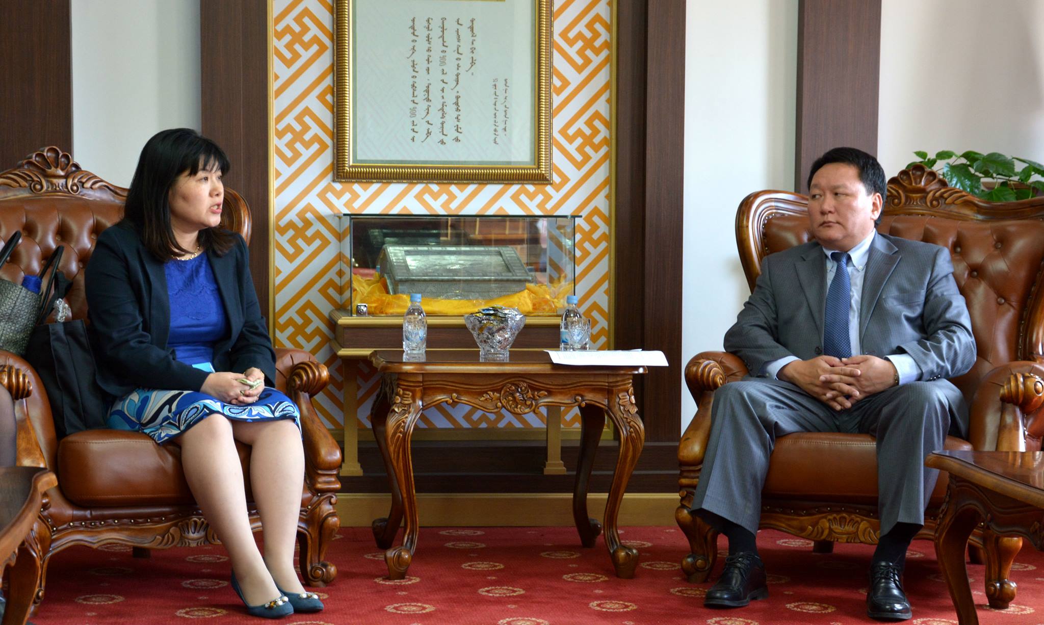 10494942_436696586507620_404088286693269456_oЯпоны Олон Улсын Хамтын Ажиллагааны Байгууллага /ЖАЙКА/ -аас Монгол Улсад хэрэгжүүлж буй “Эвлэрүүлэн зуучлах тогтолцоог сайжруулах” төслийн 2 дугаар шат нь 2015 оны 12 дугаар сарын 15-ны өдөр дуусаж байгаатай холбогдуулан энэхүү төслийн зорилт, зорилгууд хэрхэн хэрэгжсэн талаарх үнэлгээг хийхээр ЖАЙКА-ийн үнэлгээний багийн 3 мэргэжилтэн Монгол Улсад ажиллаж байна. ЖАЙКА-ийн өмгөөлөгч, Японы Өмгөөлөгчдийн Нэгдсэн Холбооны Олон улсын харилцааны хорооны нарийн бичгийн дарга хатагтай Исои Миха тэргүүтэй төлөөлөгчдийг 6 дугаар сарын 19-ний өдөр Хууль зүйн яамны Төрийн захиргааны удирдлагын газрын дарга Э.Зоригт хүлээн авч уулзлаа. Уулзалтын үеэр хоёр тал дээрх төслийг амжилттай хэрэгжсэн тухай онцолж. Монгол Улсын Хууль зүйн яам болон Японы Олон Улсын Хамтын Ажиллагааны Байгууллагын цаашдын хамтын ажиллагааг өргөжүүлэх талаар харилцан санал солилцлоо.