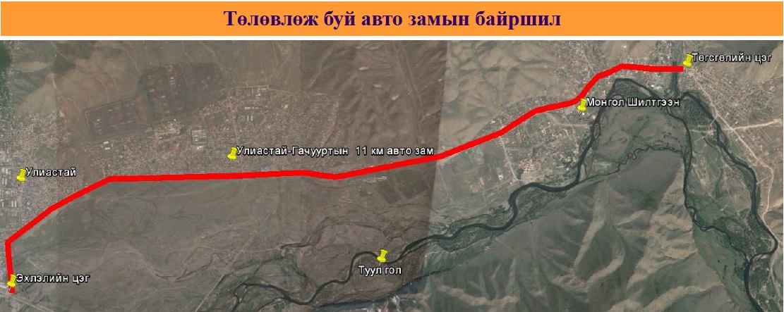 Баянзүрх дүүргийн 20,23,28-р хорооны нутаг дэвсгэрт хамаарах Улиастайн уулзвараас Гачуурт чиглэлийн 11.0 км авто замын барилга угсралтын ажлын гүйцэтгэгчээр “Үйлсийн зам” ХХК ажиллаж байна. Нийслэлийн төсвийн хөрөнгөөр санхүүжих 6 123 550 161 төгрөгийн төсөвт өртөгтэй уг замын ажлыг 2015 оны 06 дугаар сарын 03–наас 08 дугаар сарын 30-ны хооронд гүйцэтгэж дуусгана.