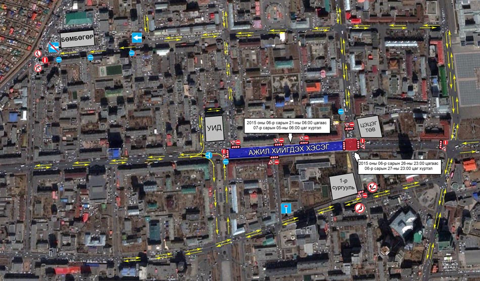 3c35e48db1730c75335341ca53638013Энхтайвны өргөн чөлөөнд хийгдэж байгаа олон жилийн насжилттай 3А,Б магистраль шугамыг Ф600/500 болгон өргөтгөх ажлын хүрээнд Цэцэг төвийн 4 замын уулзварын автозамын хөдөлгөөнийг 2015 оны 06 дугаар сарын 26-ны 23:00 цагаас 06 дугаар сарын 27-ны 23:00 цаг хүртэл хааж, 24 цагийн хугацаанд автозамын ажлыг бүрэн дуусгахаар төлөвлөжээ гэж нийслэлийн ЗДТГ-ын Хэвлэл мэдээлэл, олон нийттэй харилцах хэлтсээс мэдээллээ.
