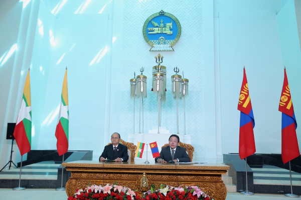 Монголын тал Мьянмар Улсад өрнөж буй өөрчлөлт шинэчлэлийн үйл явц тасралтгүй үргэлжилж, нийгэм, эдийн засгийн хөгжил, үндэсний эв нэгдэл, ардчиллын үйл явцад бодит үр дүн гарч байгааг тэмдэглэв. Монгол Улсын Ерөнхийлөгч хоёр орон ардчилал, нээлттэй нийгэм, хүний эрхийн үнэт зүйлийн талаар нэгдмэл ойлголттой байдгийг тэмдэглэж, ардчилал, нийгэм, эдийн засгийн шинэчлэлийн талаар гаргаж буй Мьянмар Улсын хүчин чармайлтыг Монголын тал үргэлжлүүлэн дэмжихэд бэлэн байгаагаа илэрхийлэв.