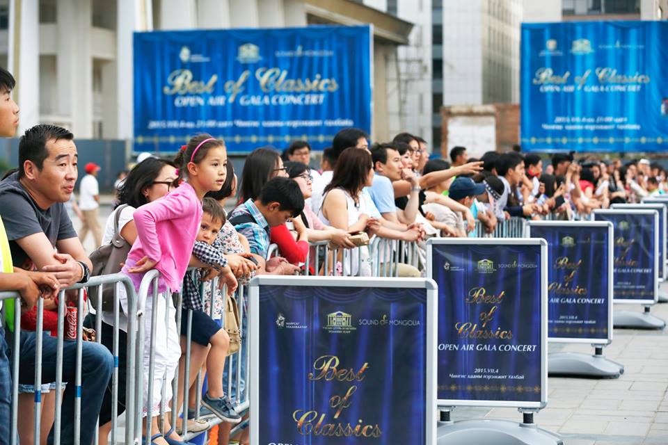 11720072_1172617369430937_1124850184_nДБЭТ-ын уран бүтээлчид өнгөрсөн бямба гаригийн үдэш Чингисийн талбайд цуглаж, “Best of Classic-Open air” тоглолтоороо үзэгчиддээ бэлэг барив. Тус тоглолт өнгөрсөн оны долдугаар сарын 6-нд анх удаа дээрх талбайд зохион байгуулагдсан билээ. Санаачлагыг “Саунд оф Монголиа” компанийн захирал Х.Дамдинсүрэн гаргаж, Нийслэлийн засаг даргын тамгын газар, Нийслэлийн соёл урлагийн газрын дэмжлэгтэйгээр нэр төртэй өндөрлүүлсэн юм.