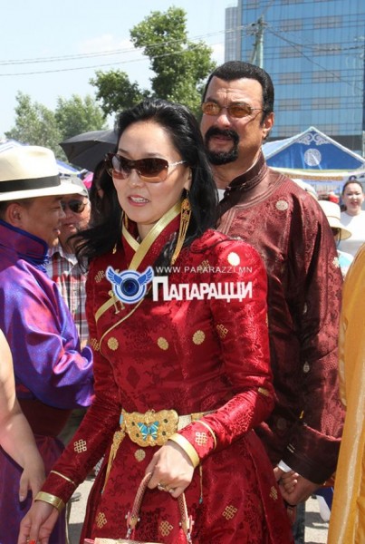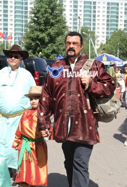 Стивен Сигал, эхнэр хүүгийн хамтаар төв цэнгэлдэх хүрээлэнд наадам үзэхээр явааг бид дурандаа буулгалаа. Сигалын гэр бүлийн наадмын гоёлыг хүргэж байна.