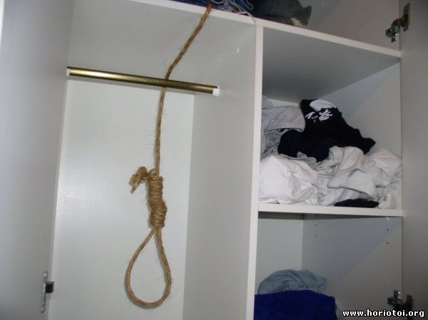 Манай охин нэг удаа онгорхой шүүгээний өөдөөс эргэн тойрныг нь харж инээгээд байлаа. Би охиноосоо юу нь тийм инээдтэй байгааг асуухад “Тэр хүн” гэж хариулсан би гайхаад “Юун хүн?” гэхэд тэр шүүгээрүү заагаад “Тэр хүн хүзүүгээрээ могой оройсон” гэж хэлэхээр нь би эргээд хартал юу ч байгаагүй. Би үнэхээр их айсан яагаад гэвэл өмнө нь энэ байшинд хэн нэгэн нь өөрийгөө боомилж нас барсан байж магадгүй гэж бодсон.