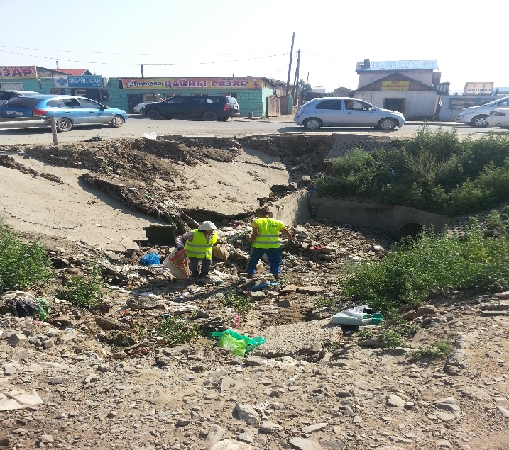 Улаанбаатар хотод 2015 оны 07 дугаар сарын 16-20-ны өдрүүдэд үргэлжлэн орсон ширүүн борооны улмаас Чингэлтэй дүүргийн 10, 11, 12 дугаар хорооны үерийн далан, суваг, гуу, жалгын дагуу хуримтлагдсан хог хаягдлыг “Чингэлтэй дүүргийн Тохижилт үйлчилгээний” ХХК-иас 15 хүн 1 автомашинтай цэвэрлэгээний бригад гарч ажиллалаа. Цэвэрлэгээний хүрээнд 6050 м2 талбайг цэвэрлэж, нийт 12.2 тн хог хаягдлыг ачиж тээвэрлэсэн байна. Мөн үерийн улмаас бохирдсон 300м2 зам, талбайд дүүргийн Эрүүл мэндийн төвөөс 4 хүн 1 автомашинтай ажиллаж , хлорын шохойн сүүн уусмалаар ариутгал халдваргүйжүүлэлт хийжээ. Хог хаягдал цэвэрлэх, ариутгаж, халдваргүйжүүлэх ажилд дүүргийн Онцгой байдлын хэлтсийн Гамшгаас хамгаалах улсын хяналтын ахлах байцаагч, ахмад Л.Тамир хяналт тавьж удирдлагаар ханган ажилласан байна.