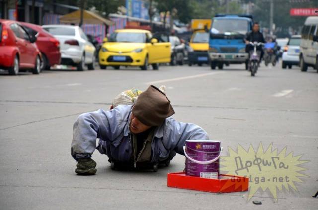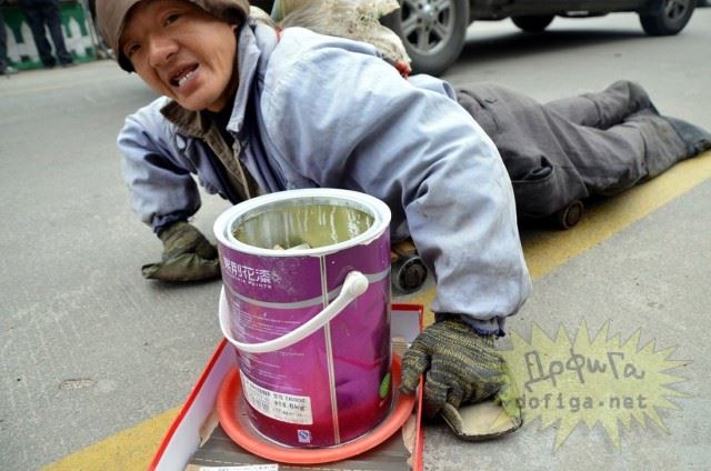 11825649_866740483380860_4547875740785044628_nХятадын Вэнлин хот. Тахир дутуу гуйлагчин дугуйтай банзан дээрээ элгээрээ хэвтэн гудамжаар явж гуйлга гуйдаг. Бүсэлхийнээс доош мэдээгүй юм гэнэ. Ямар гамшиг дайрсан тухайгаа ярьж, хүзүүндээ зүүсэн жижигхэн дуу хураагуураас гунигтай дуу байнга явдаг.