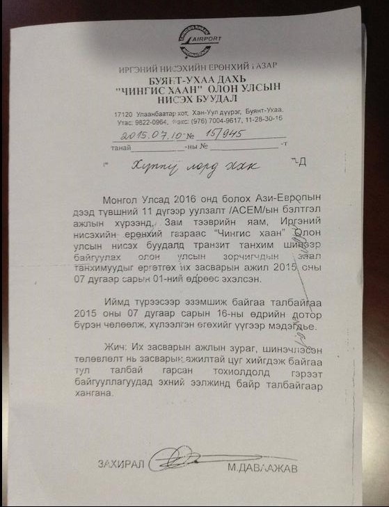 Дараагийн баримт буюу хамгийн ноцтой нь гэвэл “Чингис хаан” олон улсын нисэх буудал дахь Хилийн цэргийн 0218 дугаар ангийн захирагч, хурандаа, Бүрэн эрхт төлөөлөгч Д.Ганбаатарт хандан “Борлуулалтын ажилтныхаа тоог нэмэх хүсэлтэй байгаа тул дор дурдсан хүмүүст хяналтын бүсэд нэвтрэх үнэмлэх олгож өгнө үү” гээд зургаан хүний нэрийг жагсаажээ. Хамгийн сонирхолтой нь энд “Энэ ажилчдын тоог Ерөнхий сайдын зөвлөл, зөвлөх шийдвэрлэсэн болно” гэсэн байгаа юм.